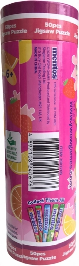 Kutijica u dizajnu omiljenih bombona MENTOS. Slagalica ima 50 dijelova, a kutijica i sama slagalica izrađene su od reciklabilnih materijala. Proizvod je prikladan za djecu od 6 godina.