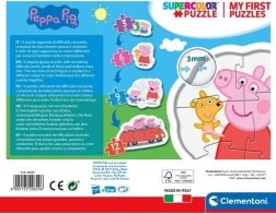 Igračka je namijenjena djeci od 2 godine kako bi sigurno upoznala svijet slagalica uz pomoć svojih omiljenih likova iz Pepine obitelji. Ovo pakiranje sadrži četiri različite slagalice s rastućom složenošću, od 3 do 12 dijelova.