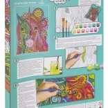 - Predtiskano platno s numeriranim površinama, set akrilnih boja, 3 kista