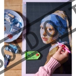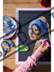 Dijamantno slikanje GRAFIX donosi umirujuće kreativno iskustvo. Uz aplikator i vosak lijepite kamenčić po kamenčić na označena mjesta na platnu s ljepljivim slojem i postupno stvarate sjajnu sliku kultnog motiva Djevojka s biserom u veličini 40 × 50 cm.