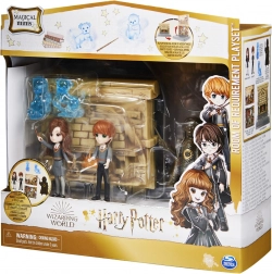 - Igraći set s vratima i kaminom, 2 figurice (Hermiona Granger, Ron Weasley), 2 figurice Patrona (vidra, terijer), trening lutka, dekorativne naljepnice