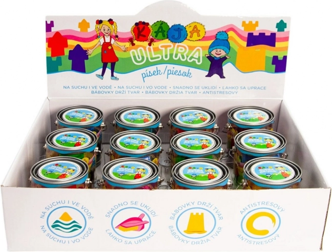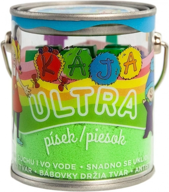 Kinetički ULTRA pijesak s licencom KAJA i BAMBULÁČEK u pakiranju od 120 g i s jednom malom modlicom nudi 6 živih boja. Odlično se oblikuje, ne prlja, lako se čisti i kalupi savršeno drže oblik. S njim se može čak graditi pod vodom, a zahvaljujući mekanoj konzistenciji služi i kao antistres pomoć. Pogodno za djecu od 3 godine.