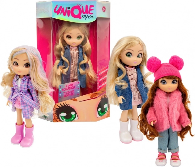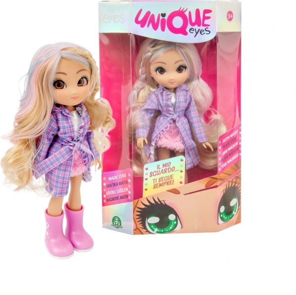 Otkrijte čaroliju lutke Unique Eyes – moderna lutka visoka 25 cm s magičnim očima koje vas prate, dugom, svilenkastom kosom i modernom odjećom i cipelama. Dostupna u 3 različite varijante, idealna za djecu od 3 godine.