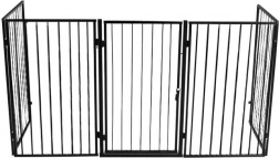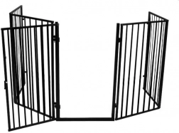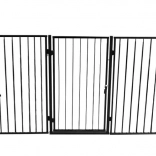 Praktična sigurnosna ograda za kamin štiti djecu i kućne ljubimce od vrućih površina i otvorenog plamena. Zahvaljujući pet segmenata na šarkama lako je prilagodite prostoru, ima jednostavnu montažu u zid, sigurnosnu zaštitu protiv slučajnog otvaranja i kompatibilna je s većinom kamina. Robusna čelična konstrukcija u crnoj boji, ukupna širina 304 cm i visina 74,5 cm pružaju pouzdanu zaštitu u dnevnom prostoru.