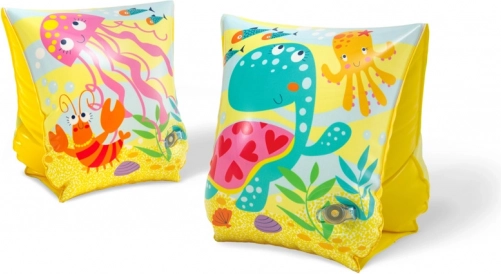 Priuštite djeci sigurnije prve korake u vodi s napuhujućim rukavicama Morski svijet. Zahvaljujući dvjema odvojenim komorama pružaju stabilan uzgon i pomažu graditi samopouzdanje pri plivanju. Veseli morski motivi s hobotnicom, kitom i drugim stvorenjima privlače na prvi pogled.
