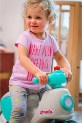 Guralica Strada Retro vraća uspomene na igračke iz 70-ih u novom, modernom ruhu. Idealna je za djecu od 1 godine i nosi do 25 kg. Zahvaljujući tihim kotačima prekrivenim elastomernim slojem guralica pruža glatko i tiho iskustvo vožnje, dok široki kotači osiguravaju stabilnost.