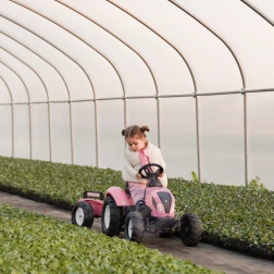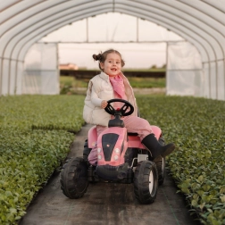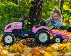 Dječji traktor FALK Country Star razveselit će sve male vozače koji vole kretanje i igru na svježem zraku. Konstrukcija od izdržljive plastike osigurava dug vijek trajanja i sigurno korištenje, dok lančani pogon na stražnjoj osovini pruža glatku vožnju. Zahvaljujući odvojivoj prikolici djeca mogu prevoziti igračke ili sitnice i uživati u realističnom doživljaju vožnje.