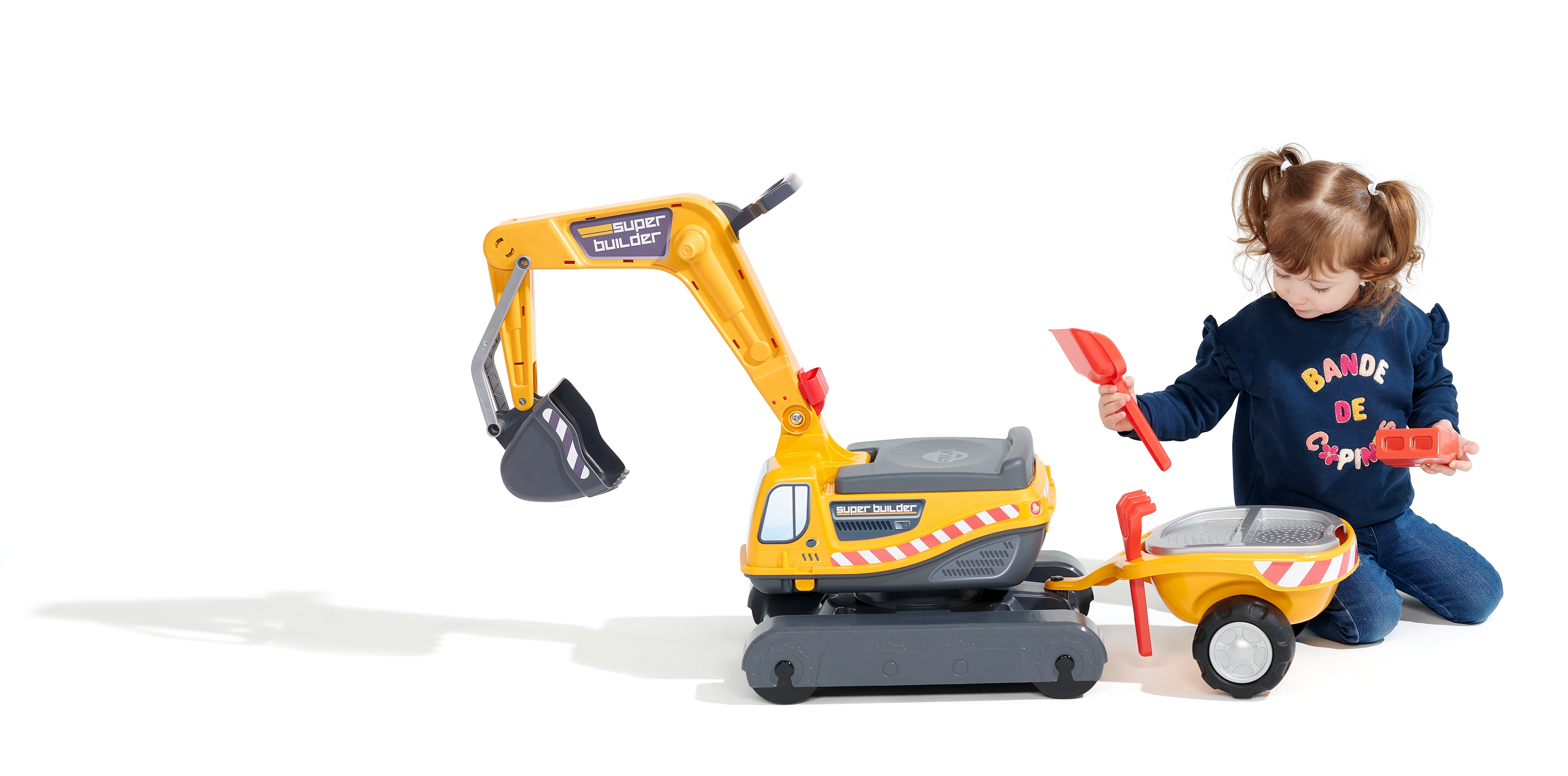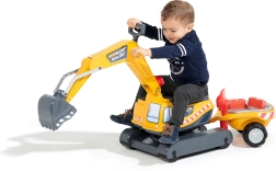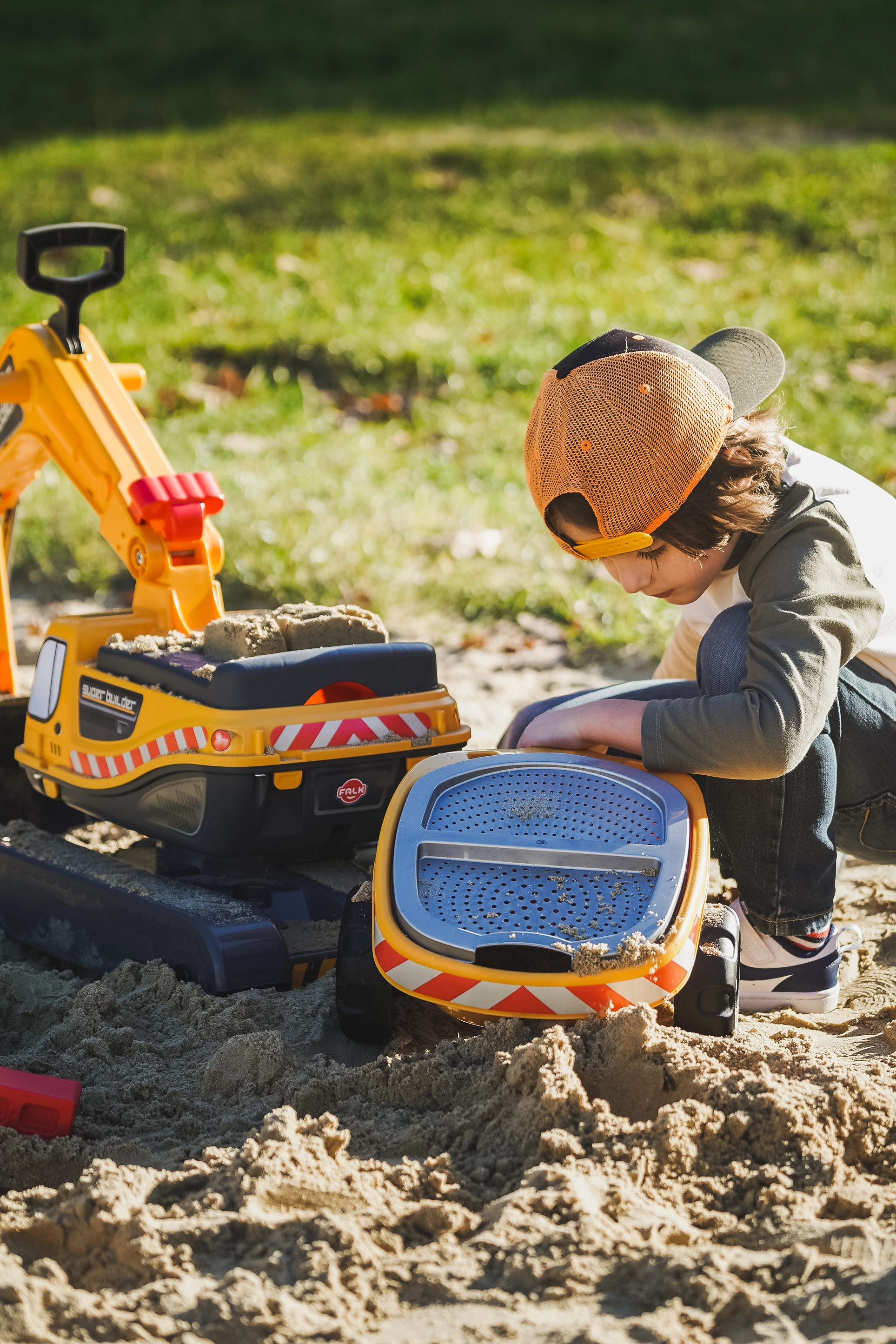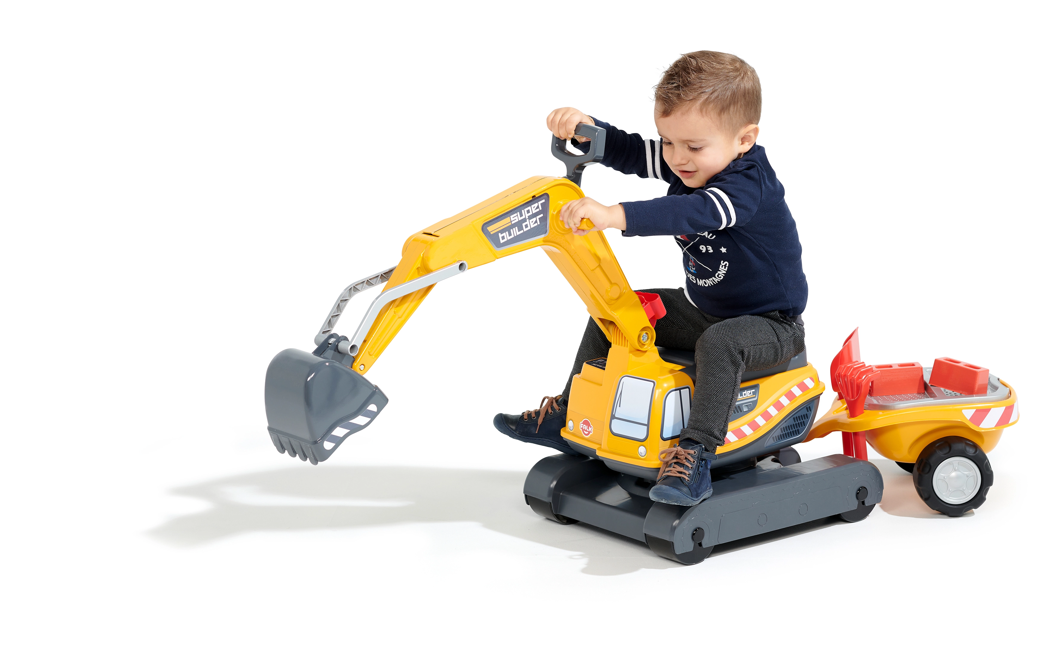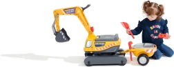 Guralo Super gusjeničarski bager narančaste boje s funkcionalnom žlicom, imitacijom gusjenica, prikolicom i setom za igru u pijesku – 2x kalup u obliku cigle, lopatica i grabljice. Izrađeno od visokokvalitetne i izdržljive plastike. Veličina 85×38×67 cm. Dob 3+. Svi Falk traktori testirani su na 50 kg – u skladu sa zahtjevima europskih normi. Proizvedeno u Francuskoj.
