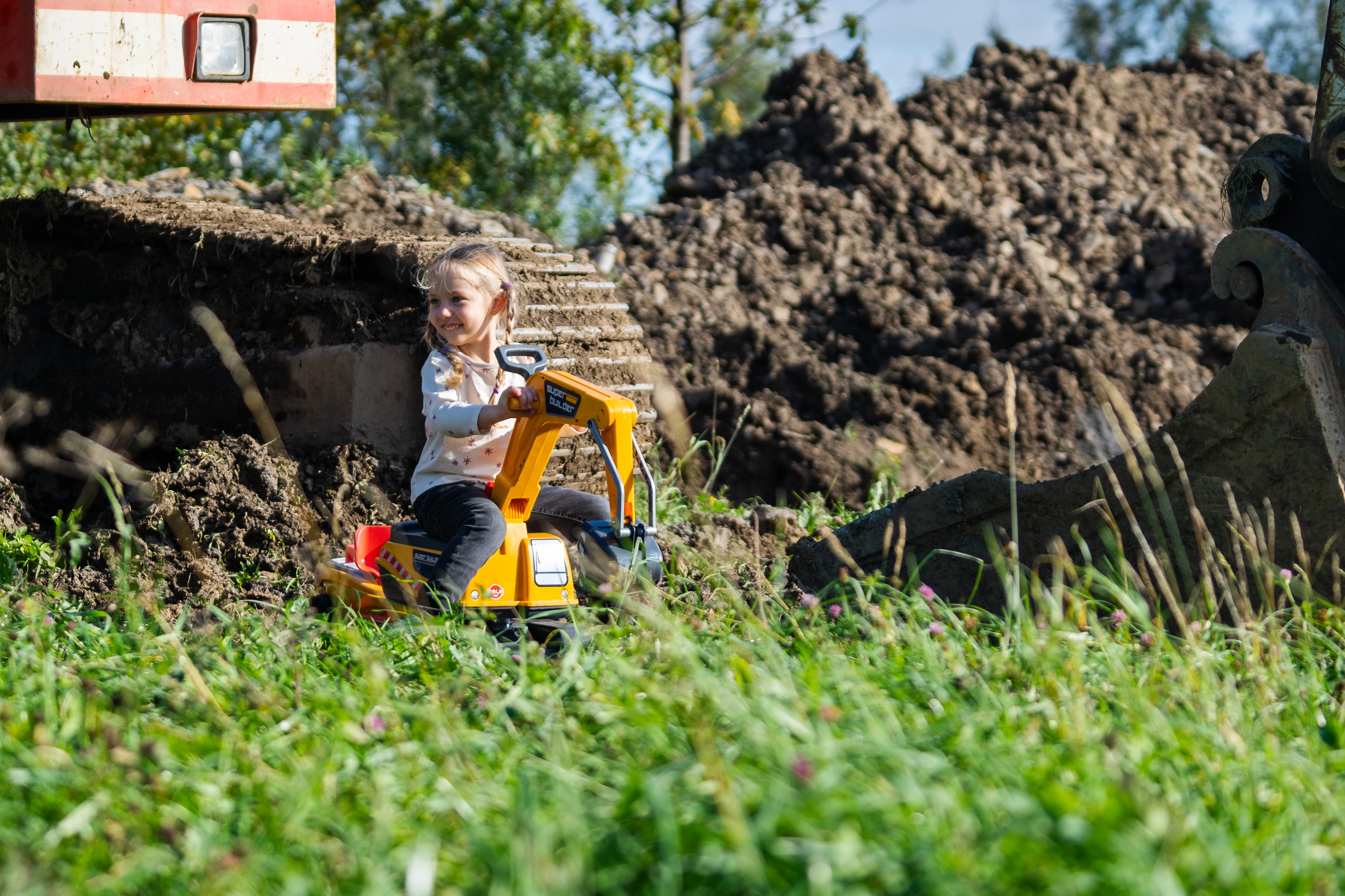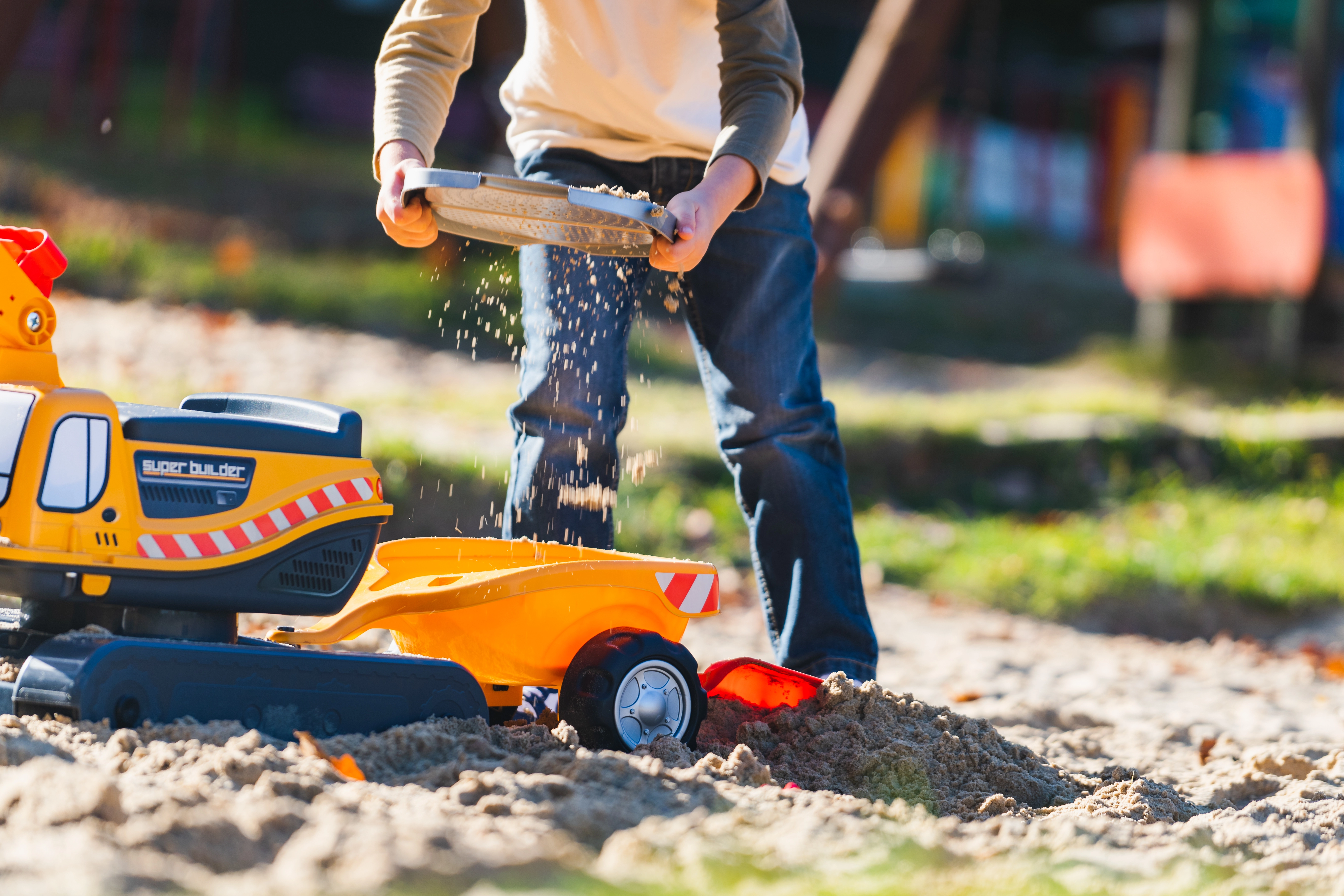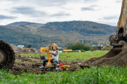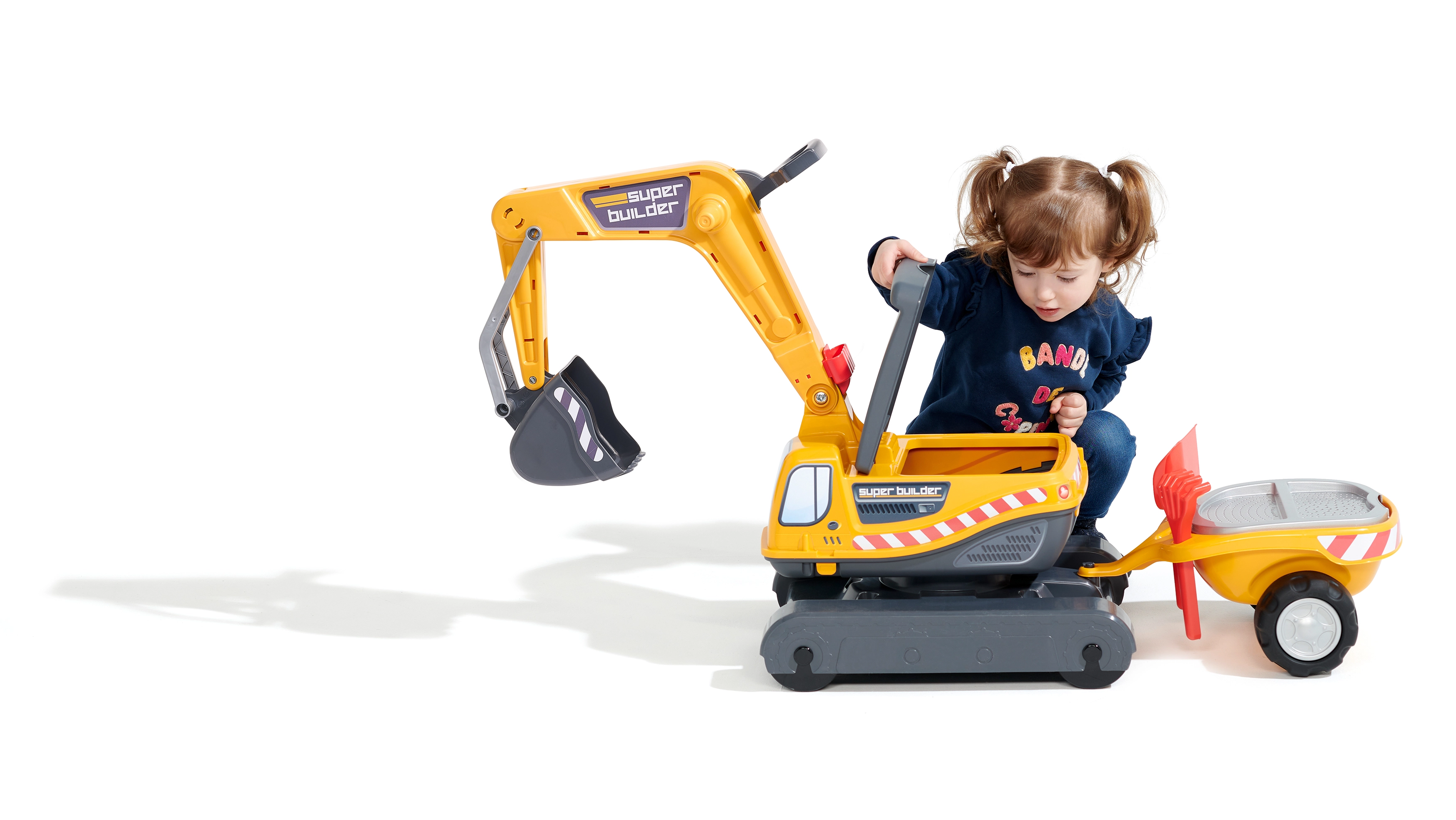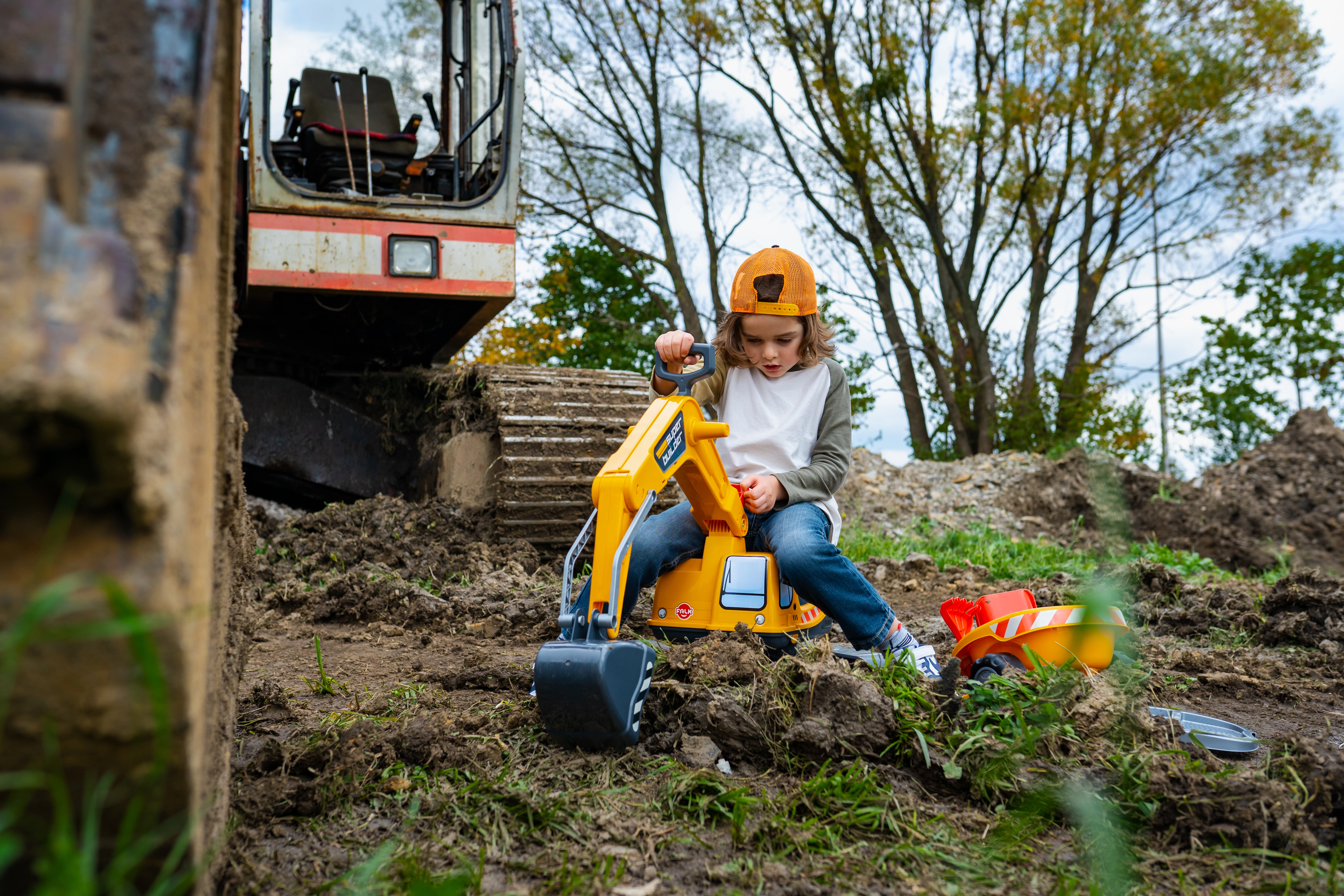 Guralo Super gusjeničarski bager narančaste boje s funkcionalnom žlicom, imitacijom gusjenica, prikolicom i setom za igru u pijesku – 2x kalup u obliku cigle, lopatica i grabljice. Izrađeno od visokokvalitetne i izdržljive plastike. Veličina 85×38×67 cm. Dob 3+. Svi Falk traktori testirani su na 50 kg – u skladu sa zahtjevima europskih normi. Proizvedeno u Francuskoj.