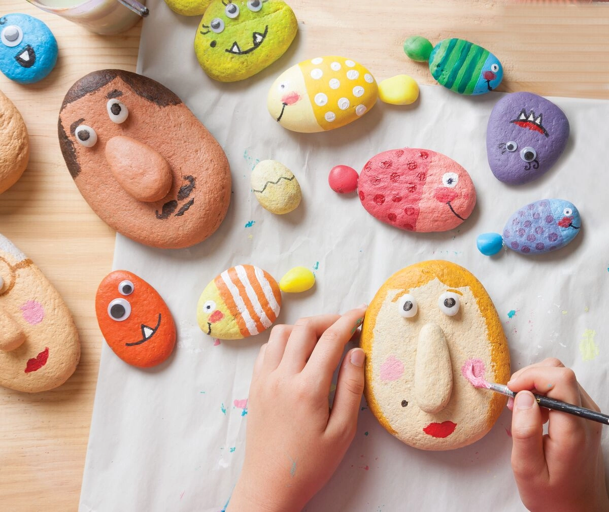 Stvarajte preslatka lica, ribice i čudovišta s izražajem – pomične oči i plastični detalji daju kamenčićima jedinstven karakter.