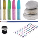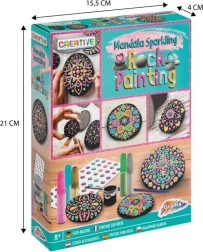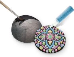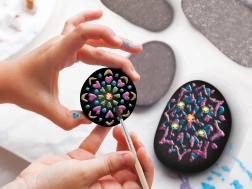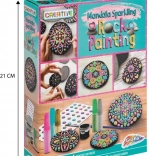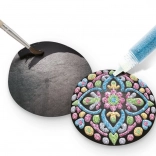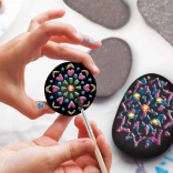 Uz ovaj kreativni set lako ćete izraditi efektne mandalinske uzorke i sjajne motive na glatkim kamenčićima. Zahvaljujući kombinaciji crne podloge, metalnih boja i samoljepljivih kamenčića vaše dekoracije istaknut će se snažnim kontrastom i sjajem. Slikanje na kamenčiće odličan je način da se opustite i pritom izradite lijepe darove ili dodatke za dom i vrt.