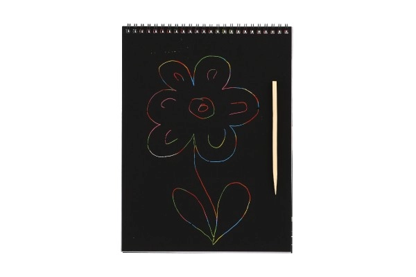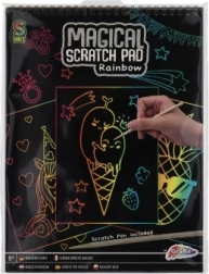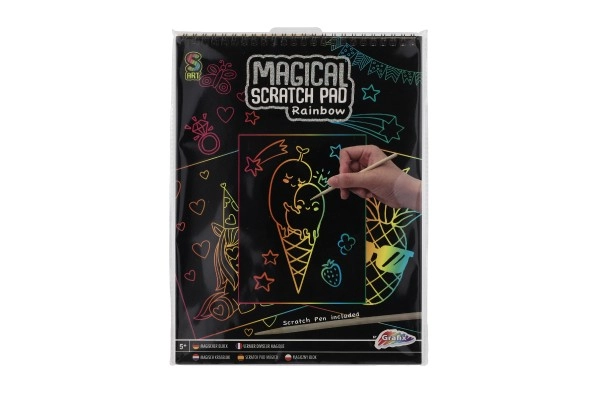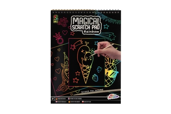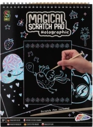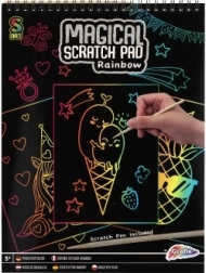 Spiralni blok za grebanje izvrstan je poklon za male i velike stvaratelje. Zahvaljujući priloženoj olovci za grebanje u trenu ćete izraditi originalne slike, natpise ili uzorke. Nakon što sastružete crveni sloj, pojavit će se sjajni holografski efekt koji svakom uratku daje wow dojam.