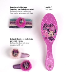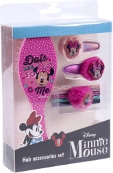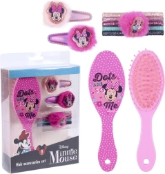 Usrećite male modne ljubiteljice s blistavim setom za češljanje s motivima vesele mišice Minnie, koji sadrži 8 komada uključujući četku za kosu, gumice i kopče.