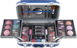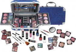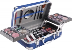 Kozmetički kovčežić s aluminijskim rubovima Travel Blue s integriranim zrcalom – ukupno 84 komada pribora.