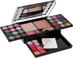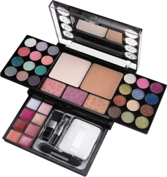 - 16× sjenila za oči, 8× kremasto sjajilo za usne, 8× krema sa šljokicama, 2× puder, 1× aplikator/kist (3u1), integrirano ogledalo