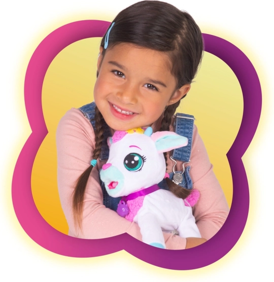 Vaša djeca će se zaljubiti u ovo predivno interaktivno kozliće, koje reagira na dodir i pruža beskrajne sate zabave. Brinite se o kozliću mazeći ga po glavi, hraneći ga iz bočice i čak ga cijepeći. Zahvaljujući interaktivnim elementima, kozliće će stati na sve četiri, imitirajući pravo životinjsko ponašanje.