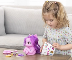 Uz ukosnice i gumice za kosu djeca mogu ukrašavati grivu prema svojoj mašti te dodavati upečatljive detalje pomoću naljepnica s motivom Pipp. Ova igračka jamči sate zabave i namijenjena je djeci od 3 godine nadalje.