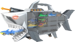 Kreni u avanturu s transporterom u obliku morskog psa koji prima do 24 autića i nudi svjetla, zvukove i otvarajuće čeljusti. Zahvaljujući ručki i kotačićima lako se prenosi, a tu su i brza rampa i raketni bacač te bogata oprema za trenutnu igru.