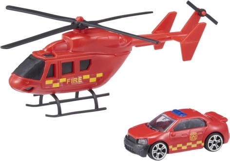 Crveni vatrogasni helikopter i interventno vozilo donose napete priče spašavanja. Ručno okretni rotori oživjet će svako gašenje i evakuaciju.
