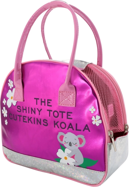 Sjajna ružičasta torbica s motivom koale omogućuje udobno prenošenje igračke i upotpunjuje svaki dječji outfit.