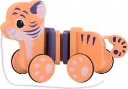 Ova vesela i kvalitetna drvena vučna igračka opremljena je kotačićima umjesto nogu, što omogućuje glatko kretanje pri povlačenju za konopčić. Tijelo se pri kretanju njiše zahvaljujući šarenim pravokutnicima na leđima, što privlači dječju pažnju i potiče razlikovanje boja. Igračka je izrađena od FSC certificiranog drva, što jamči da potječe iz održivo upravljanih šuma.