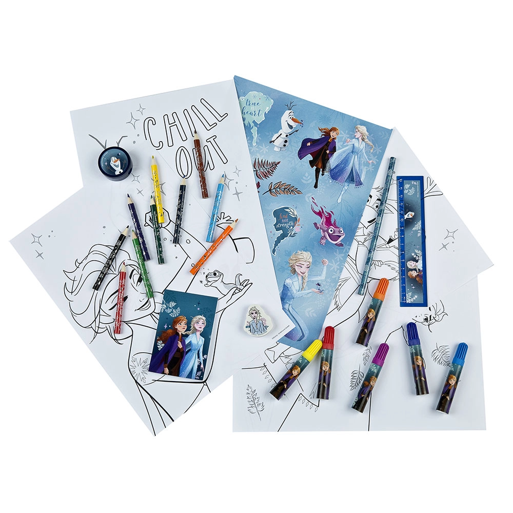 Ovaj kreativni set s omiljenim junakinjama iz FROZEN idealan je za male umjetnike. Nudi raznolik izbor likovnih potrepština i dodataka, izvrsnih za kućno stvaranje, putovanja ili kao poklon iznenađenja. Zahvaljujući kompletnom sadržaju djeca lako stvaraju crteže, plakate i ukrašavaju bilježnice.