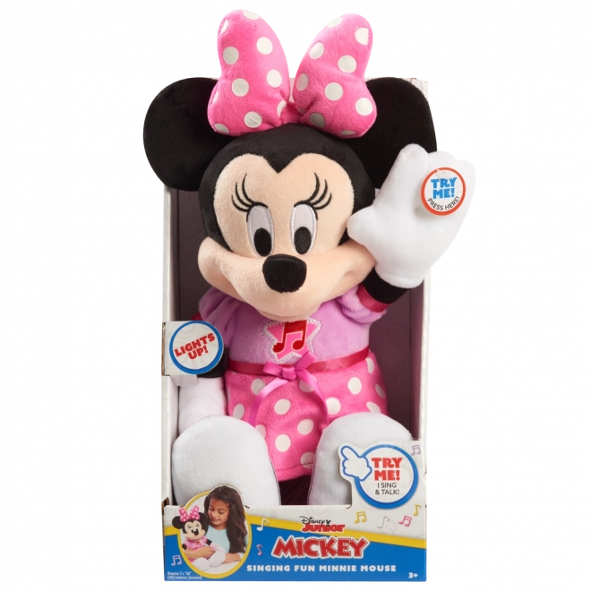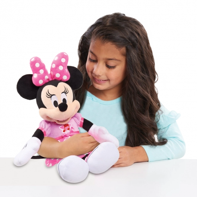 Ova preslatka plišana Minnie Mouse visoka je 30 cm i nosi prekrasnu ružičastu odjeću s bijelim točkicama. Sa svojim mekim materijalima idealna je igračka za djecu od tri godine naviše.