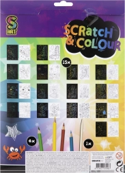 - 15 listova A5, 1× alat za grebanje, 4× bojica