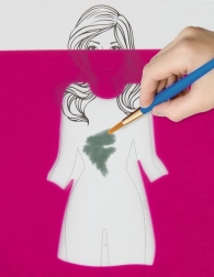Dio seta je 36 listova s predlošcima likova, 5 plastičnih šablona s elementima odjeće i dodataka te bogat set naljepnica za završno ukrašavanje. Praktičan format pogodan je za putovanja i školu, stranice se lako okreću, a rad je zahvaljujući šablonama intuitivan.