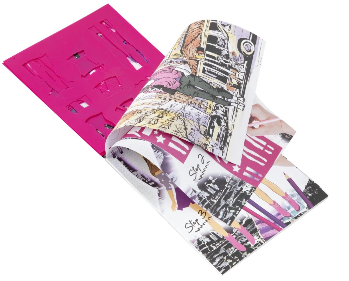 Ova stilska skicirka s čvrstom spiralnom vezom idealna je za sve male i veće ljubitelje mode. Zahvaljujući unaprijed nacrtanim siluetama, šablonama i naljepnicama možete brzo stvarati originalne prijedloge, kombinirati boje i eksperimentirati s dodacima.