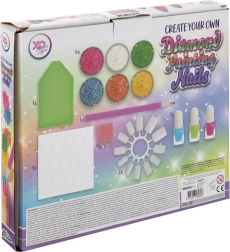 Noktarni studio Diamond – set sadrži 3 laka za nokte, 6 samoljepljivih kamenčića u raznim bojama, plastične nokte i četkicu za nanošenje.