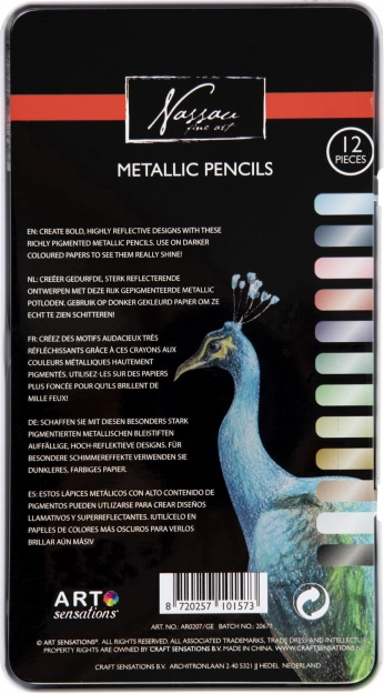 Set metalik bojica Nassau donosi sjajne i blistave boje koje vašim ilustracijama daju jedinstven odsjaj. Najbolje se ističu na tamnom papiru, gdje njihov efekt u potpunosti dolazi do izražaja. Zahvaljujući ergonomskom promjeru olovke i čvrstoj drvenoj konstrukciji, ugodno leže u ruci i odolijevaju čestoj upotrebi.