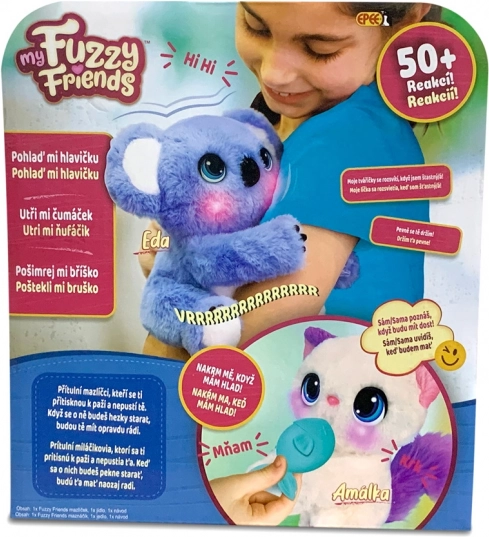 Otkrijte čaroliju interaktivne plišane životinjice koale Ede iz serije My Fuzzy Friends. Ovaj mazni prijatelj reagira na dodir i interakciju na više od 50 različitih načina, uključujući zvukove i pokrete. Eda ima posebne zglobove koji mu omogućuju da zagrli dječju ruku i privije se uz nju. Koalu možete gladiti, škakljati, nahraniti, obrisati mu nos pa čak i pomoći mu da zaspe.