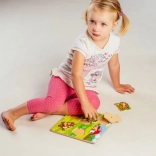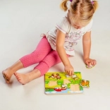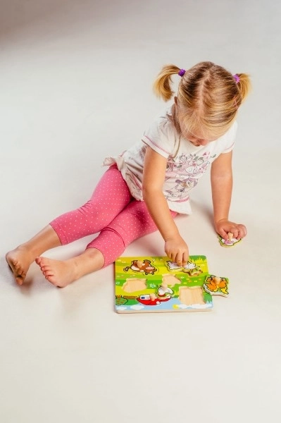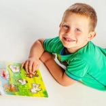 Drvena umetnička Farma je savršeno sredstvo za razvoj kreativnosti i pažnje vaše djece. Zahvaljujući bogato obojenim životinjskim motivima, privlači pozornost male djece i potiče ih da istražuju svijet farmarskih životinja. Igračka dodatno podržava kognitivni razvoj i koordinaciju ruke i oka.