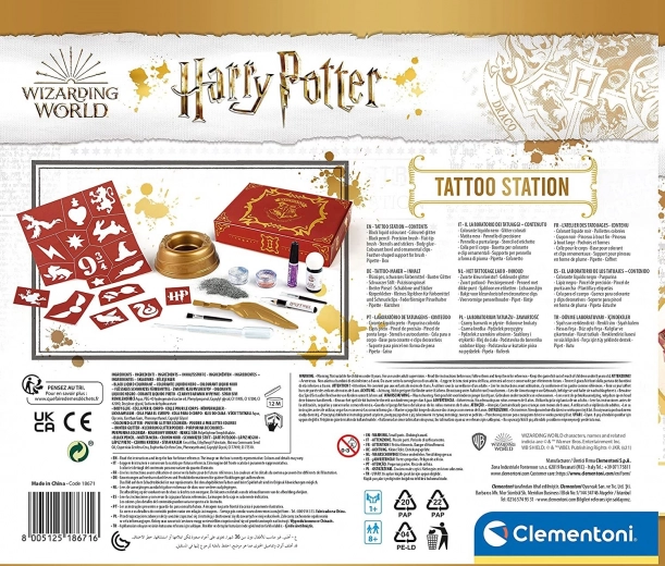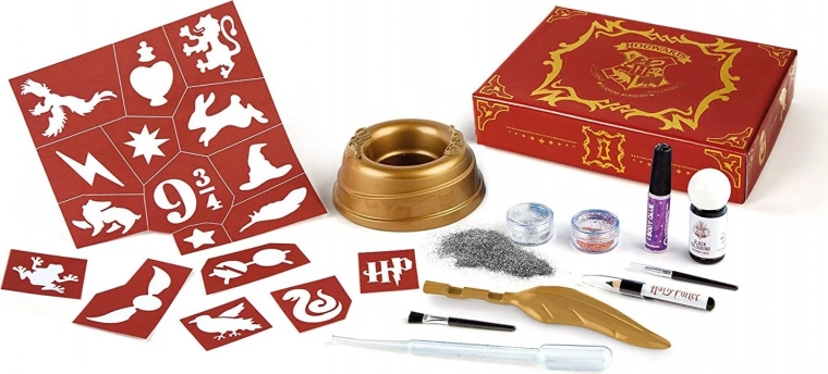 Otkrijte kreativni svijet magije s tetovažnim studiom HARRY POTTER, koji djeci omogućuje sigurno stvaranje originalnih privremenih tetovaža. Zahvaljujući bogatoj opremi, šablonama i šljokicama nastaju čarobni motivi nadahnuti svijetom čarolija. Jednostavna aplikacija i pregledno pohranjivanje u kaseti čine set izvrsnim poklonom za male čarobnjake i vještice.