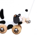 Pas je na kotačićima s motivom šapica, a njegov rep se vrtoglavim pokretom dodaje njegovoj razigranosti. Zvona pojačava igru stimulirajući slušnu percepciju djece. Opremljen je konopcem, koji je povezan s kosti u ustima, omogućavajući lako povlačenje. Igračka je pogodna za igru kod kuće i vani.