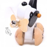 S kotačićima i pokretljivim repom, ekološka igračka potiče razvoj fine motorike i koordinacije.