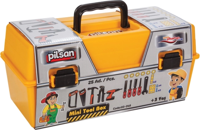Dječji set alata Pilsan donosi 34 komada sigurnih pomagala za male majstore od 3 godine. Sadrži bušilicu, odvijač, pilu, ključ, čekić, kliješta i dodatnu opremu te montažnu ploču za uvrtanje vijaka. Potiče finu motoriku, kreativnost i maštovitu igru u realističnim igrama uloga majstora.