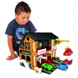 Play House radionica nudi realističan izgled dvokatne automehaničarske radionice s funkcionalnim komponentama koje potiču kreativnu igru.