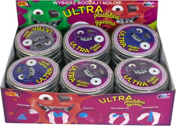 Ultra plastelina je izvrsno sredstvo za smanjenje stresa. Dostupna je u 8 kombinacija boja koje uključuju klasične boje poput ljubičaste i zelene, kao i metalik nijanse poput tamnoplave, bakrene, srebrne i zlatne. Predviđena je za djecu od 3 godine, što je čini idealnim izborom za kreativnu igru i opuštanje.