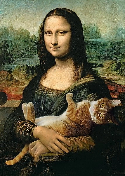 Motiv Mona Lise s mačkom Mruczek dodaje klasičnoj umjetničkoj sceni zabavan i razigran element.