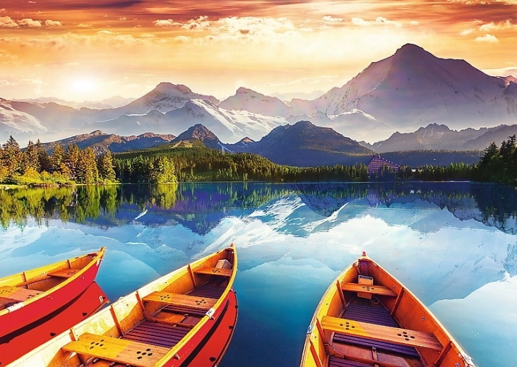 Uživajte u zahtjevnoj, a istovremeno umirujućoj zabavi sa slagalicom koja prikazuje mirnu površinu jezera, drvene čamce i monumentalne planinske vrhove. Zahvaljujući 2000 dijelova, ovaj motiv idealan je za iskusne slagatelje koji traže izazov i zadivljujući rezultat.