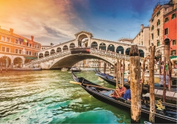 Uronite u romantičnu atmosferu Venecije s prizorom slavnog mosta Rialto u vrijeme zalaska sunca. Serija TREFL UFT omogućuje spajanje više puzzle motiva u jedan veliki kolaž – jednostavno, precizno i bez ograničenja. Posebna matrica za rezanje jamči da se pojedini dijelovi iz kompatibilnih UFT setova savršeno uklapaju, a gotovu sliku je moguće sigurno prenositi bez raspadanja.