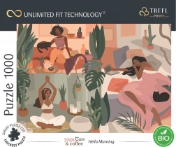 Uživajte u opuštanju uz slaganje s puzzleom TREFL UFT Yoga, Cats & Coffee – Dobro jutro od 1000 dijelova. Zahvaljujući Unlimited Fit Technology možete pojedine motive iz serije slobodno povezivati i stvarati velike kolaže bez ograničenja. Slagalica od kvalitetnog plavog kartona s jedinstvenim oblicima dijelova čvrsto drži na okupu i lako se prenosi. Ekološko bio pakiranje bez plastične folije razveselit će svakog ljubitelja održivosti.