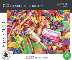 Uronite u svijet boja s motivom lizalica i slatkiša i složite sliku dimenzija cca 68,3 × 48 cm. Serija TREFL Unlimited Fit Technology omogućuje stvaranje vlastitih puzzle kolaža – granice određujete vi. Posebna tehnologija štancanja jamči da različiti motivi iz UFT serije savršeno međusobno pristaju.