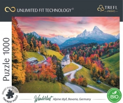 Otkrijte čaroliju jeseni u Bavarskoj s kvalitetnim puzzleima TREFL iz kolekcije UFT. Zahvaljujući Unlimited Fit Technology možete motive iz serije jednostavno povezivati i stvarati vlastite kolaže. Puzzle od 1000 dijelova od čvrstog plavog kartona odlično se drže zajedno, svaki dio ima jedinstven oblik, a bio pakiranje je prijateljsko prema prirodi.