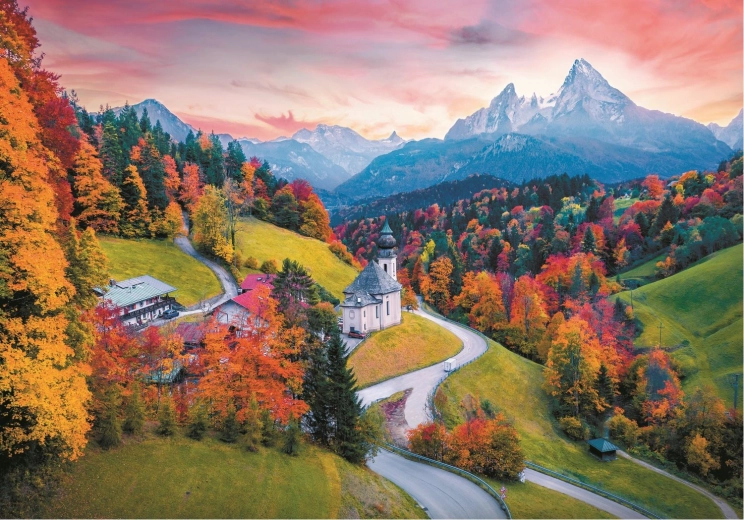 Uronite u slikovitu atmosferu podnožja Alpa. Ovaj motiv s vijugavom cesticom, crkvicom i šarenim jesenskim lišćem na pozadini snježnih planina razveselit će i oko i um. Zahvaljujući tehnologiji Unlimited Fit Technology (UFT) pojedine slike iz iste serije moguće je precizno spajati i stvarati velike, originalne kolaže bez ograničenja.