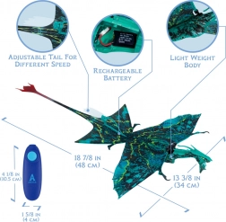 Otkrij lagano i izdržljivo leteće biće iz filma AVATAR s RC upravljanjem na frekvenciji 2,4 GHz, koje maše krilima, izvodi zračne trikove i doleti do 60 metara. Zahvaljujući jednoručnom upravljaču letenje je jednostavno i sigurno, idealno za zabavu na otvorenom za djecu od 8 godina.