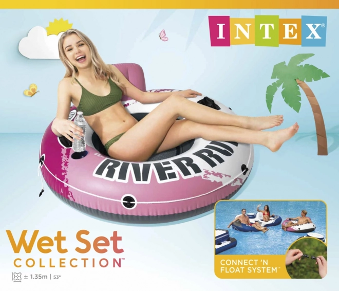 Na napuhavanje sjedište za vodu promjera 1,35m. Mrežasto dno. Naslon za udobno sjedenje. 2 zračne komore, 2 ručke, 2 držača za piće. Uže po cijeloj dužini nafukivača. Priložen flaster za popravak.