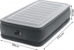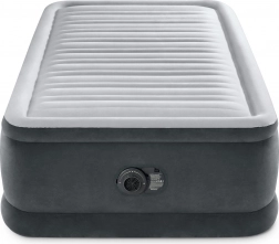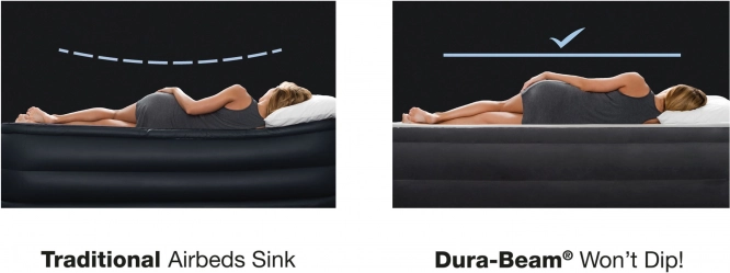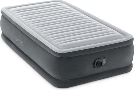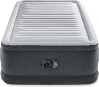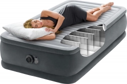 Nafukivi krevet Intex Deluxe odličan je izbor za goste, najam ili odmor. Povišena konstrukcija od 46 cm olakšava ustajanje, a meka, flokirana površina osigurava ugodan dodir i pouzdano držanje plahti. Unutarnja ojačanja Fiber-Tech od izdržljivih poliesterskih vlakana održavaju madrac čvrstim i postojanim, dok sustav Dura-Beam ravnomjerno raspoređuje težinu i podupire pravilno poravnanje kralježnice.